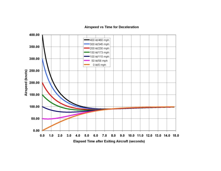 This is the graph mentioned in the Ask Allen column that shows how quickly you will slow down after a bailout. See it here. Click the image below to enlarge.
