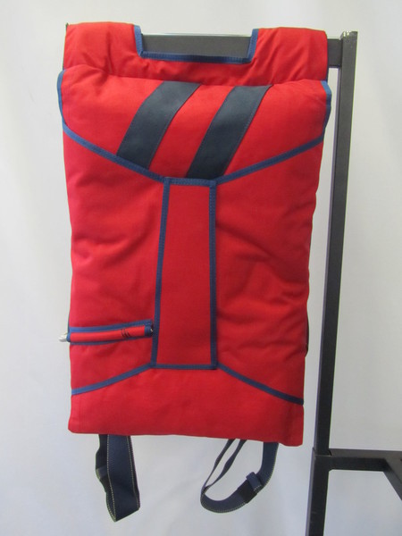 is rated at 150 KIAS with up to 220 lbs. The container is red with dark grey trim, stripes and harness. It also comes with a matching carry bag.