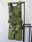 is rated at 150 KIAS with up to 220 lbs. The container and convnetional harness are dark grey. It also comes with a matching carry bag.